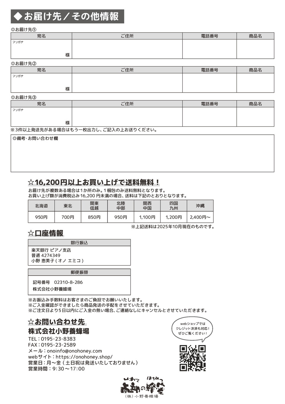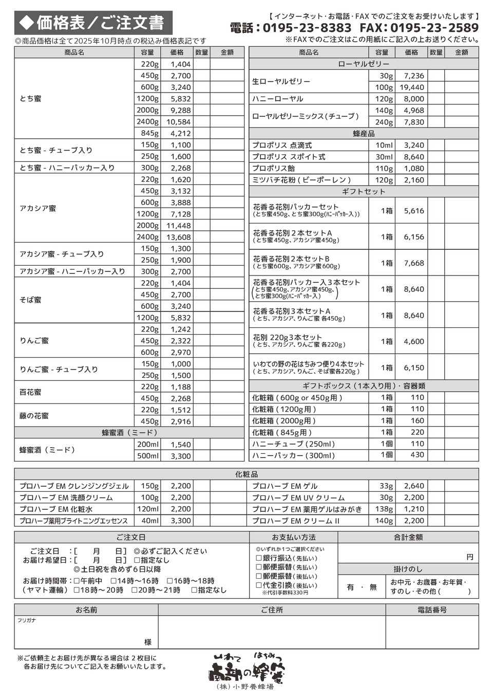 HPにはこの注文票に記載のない商品も掲載されておりますのでぜひご覧くださいませ。